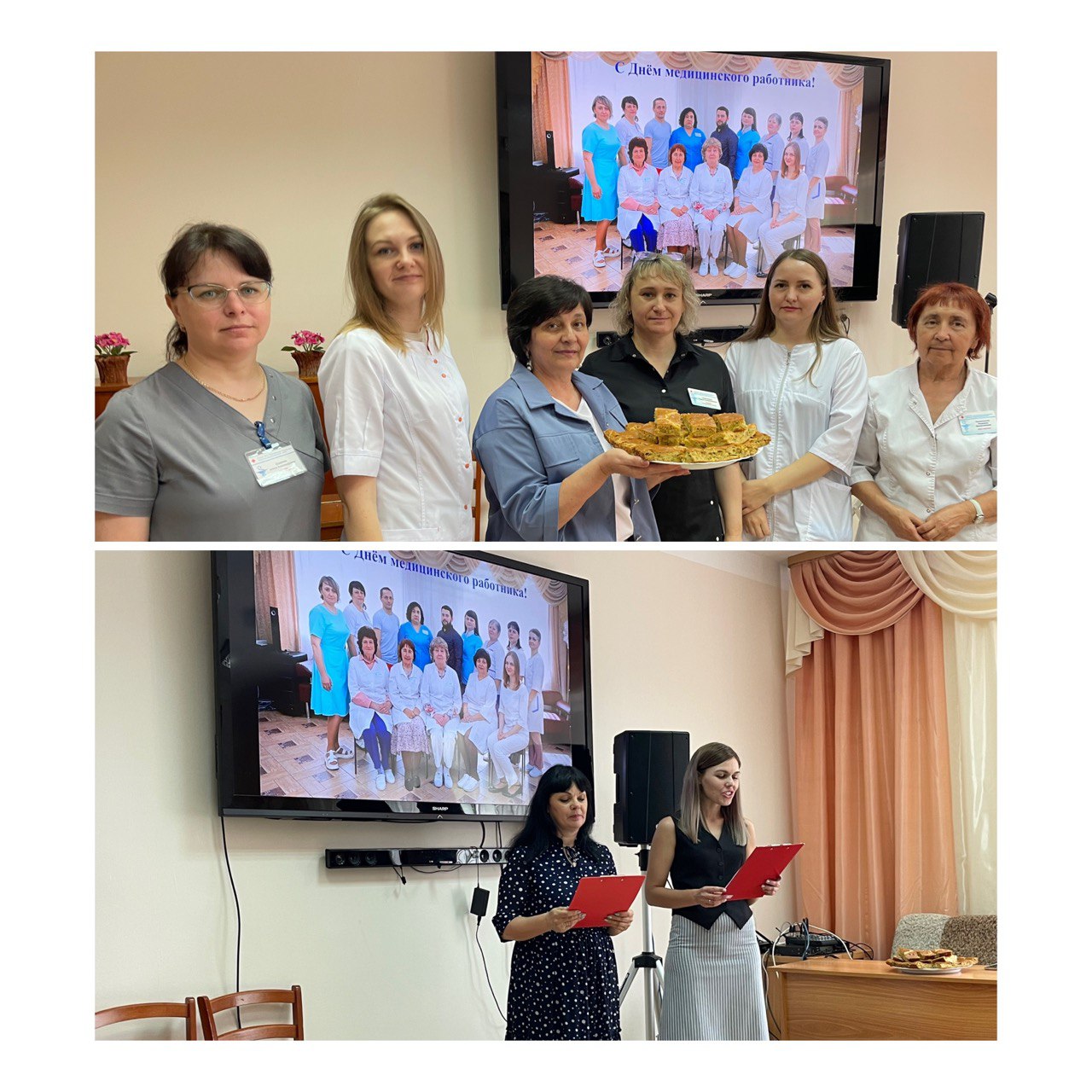 ДЕНЬ МЕДИЦИНСКОГО РАБОТНИКА! Сегодня мы тепло поздравили наших коллег- врачей, фельдшеров, медицинских сестер! Директор центра Саишева М.В. пожелала им , прежде всего, здоровья, ведь именно о здоровье наших гостей они заботятся ежедневно! Заведующая медицинским подразделением Павлова Е.А. пожелала профессионального роста каждому !Прозвучали слова поздравления в адрес «юбиляров»: делу медицины 45 лет отдала врач Курищева И.А., 35 лет-медсестра Агафонова И.Э., по 15 лет проработали в нашем центре Калтенбергер Т.Г., Коротина О.Ю., Рогова А.В.. Для праздничного настроения была проведена шуточная медицинская викторина , а виновникам торжества был вручён горячий вкусный пирог! #Коллектив